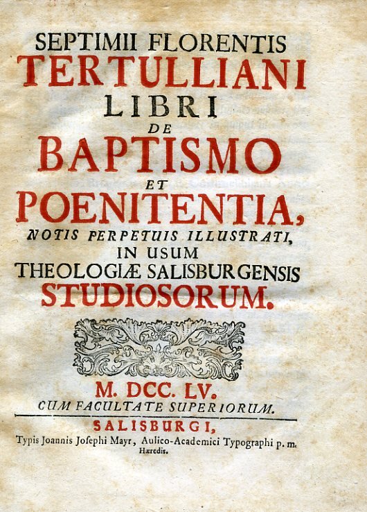 Libri de Baptismo et Poenitentia, notis perpetuis illustrati, in usum Theologiae Salisburgensis Studiosorum | Libri antichi e moderni | Tertulliano Quinto Settimio Fiorente
