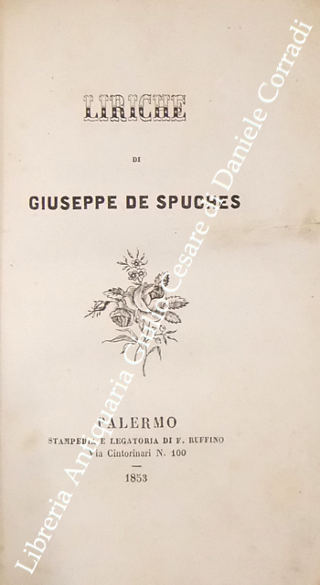 Liriche | Libri antichi e moderni | De Spuches Giuseppe (1819-1884)