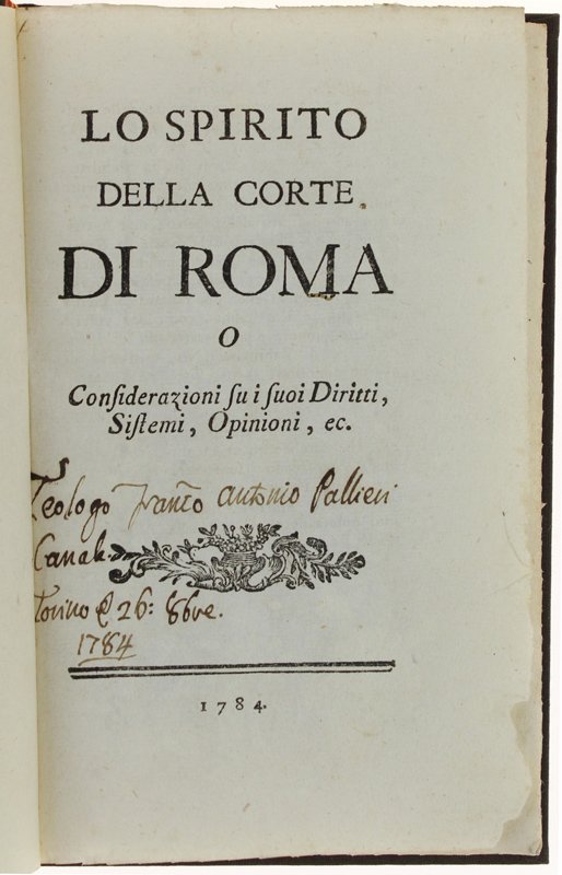 LO SPIRITO DELLA CORTE DI ROMA o Consideraioni sui suoi Diritti, Sistemi, Opinioni, ec. | Libri antichi e moderni | Anonimo (Vincenzo Besozzi?).