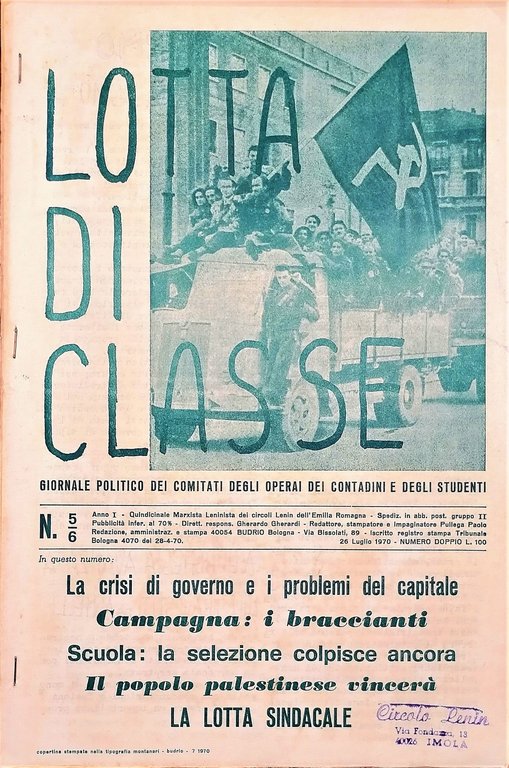 Lotta di classe. Giornale politico dei comitati degli operai, dei contadini e degli studenti. Quindicinale Marxista Leninista dei circoli Lenin dell'Emila Romagna. Anno I, N. 5/6 | Libri antichi e moderni | Gherardi Gherardo (Dir. Resp.)