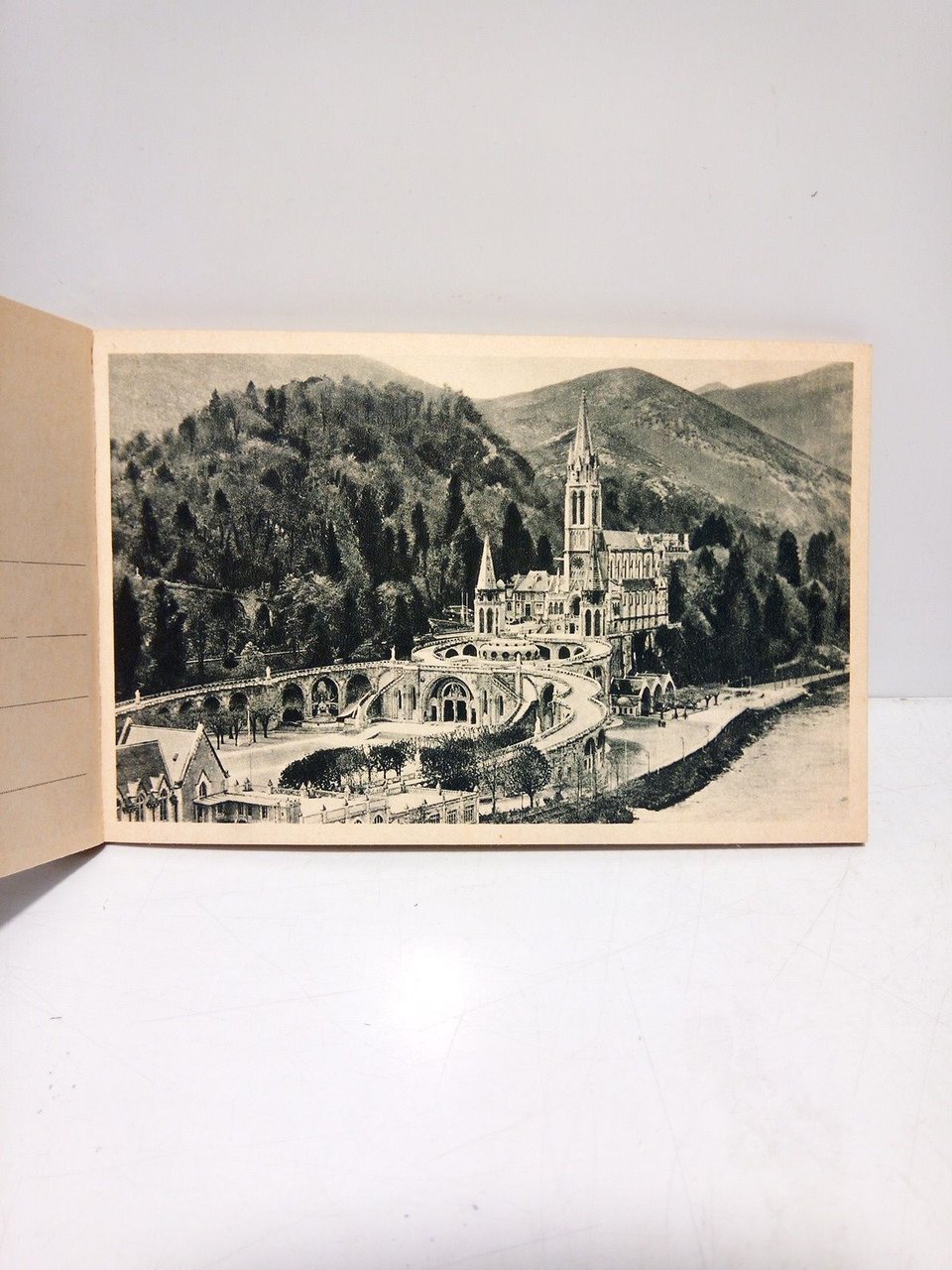 Lourdes: Editión, P. Doucet, [s.a., ca. 1939].- Librillo con 10 tarjetas postales de Lourdes heliograbadas (grabado fotográfico) en blanco y negro; 8º minúsculo apaisado (9 x 15 cm.); Textos en francés; Cubiertas en Cartulina Ed.- Raro librillo de postales del primer tercio del siglo XX.* Excelente estado. POSTAS, FILATELIA, TARJETAS POSTALES Y CRISMAS