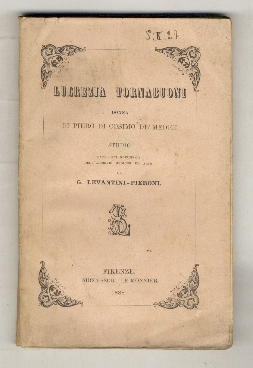 Lucrezia Tornabuoni, donna di Piero di Cosimo de' Medici. Studio fatto sui documenti dell'Archivio Medici ed altri. Di G. Levantini-Pieroni. | Libri antichi e moderni | Levantini-Pieroni Giuseppe.