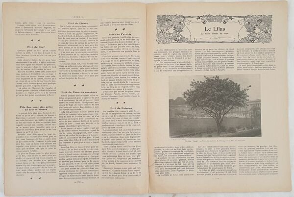Numero del 15 dicembre 1913 di questa rivista gastronomica francese "Luculla". All'interno: lista dei negozi di alimentari, tantissime ricette salate e dolci (zuppa fiamminga, uova poche, consomme SAnt'Antonio, menu per una cena di Natale, coniglio domestico, funghi gratinati, tartufi alla buona donna, indivia al gratin, insalata ghiacciata, crema all'ananas, banane al forno, marrons glaces, una ricetta fotografica: Gateau alla moda di Bretagna, ricette di patè, ), fabbricazione del miele, il lilla, il formaggio ecc. Numerose illustrazioni e foto d'epoca, pubblicita d'epoca. Copertina editoriale in discrete condizioni con usure ai margini e dorso. Legatura in buone condizioni. Pagine in buone condizioni con fioriture. In 4. cm. 31x23,5. Pp. da 267 a 286+(2).Number of the 15th of december 1913 of this french gastronomic magazine "Luculla". Inside: list of food shop, many recipes also of sweets photograph recipe of Britain gateau, pate, fabbrication of honey, cheese etc. Different illustrations and photos, advertisings. Editorial cover in fair conditions lightly worn in the extremities. Binding in good conditions. Pages in good conditions with foxing. In 4. cm. 31x23,5. Pp. from 267 to 286+(2).