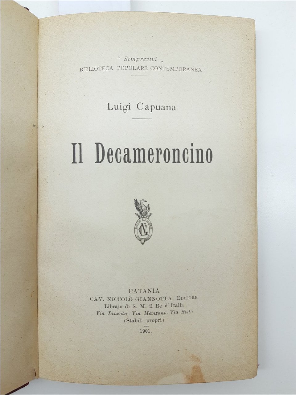 Luigi Capuana Il Decameroncino Catania Cav. Niccolo' Giannotta Editore 1901 | Libri antichi e moderni | Luigi Capuana