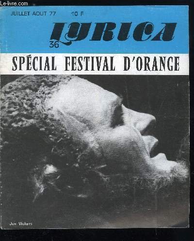 Lyrica n° 36 - Le futur directeur de l'Opéra : cinq opinions en questions, Jacques Bourgeois : Chorégies d'Orange 77, Fidelio : un opéra de la ferveur, Lucia di Lammermoor, Rossini a Paris : La Cenerentola, Tatiana Troyanos : une américaine a Paris, Jules