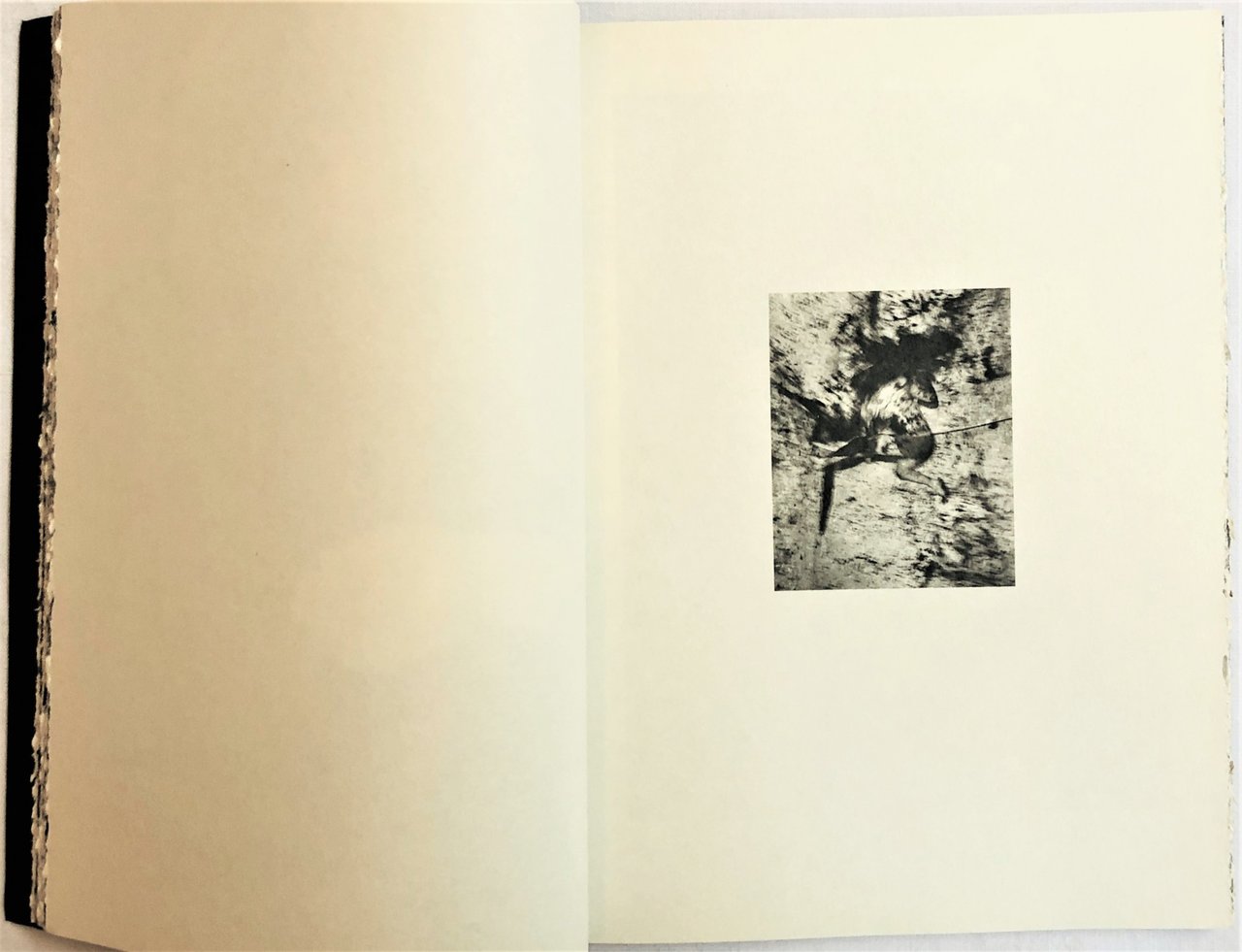 Fotografie in bianco e nero e a colori Pagine tagliate a mano con barbe. 8vo. pp. n.n. circa 50. . Perfetto (Mint). . Edizione originale di 500 esemplari (Original edition of 500 copies). . “Fotografarsi nella grotta, cercare i passaggi dei pastori e degli animali pedemontani per superare il rumore. Capire i luoghi, andando verso la spiaggia, poi tornando alla grotta e poi riallontanandosi. Un viaggio interiore alla ricerca della trama della fotografia”.Il libro pur partendo dalla vista di superfici, figure e immagini prova a raccontarle con la fotografia, provando ad arrestarne il decadimento naturale, ma fallisce.