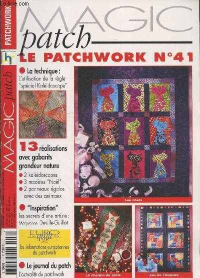 Magic Patch - Le Patchwork n°41 Décembre 2002 - Janvier 2003. Sommaire : L'utilasation de la règle "Spécial Kaléidoscope" - 13 réalisations avec gabarits grandeurs nature : 2 kaléidoscopes - 3 modèles de noël - panneaux rigolos avec des animaux - etc.
