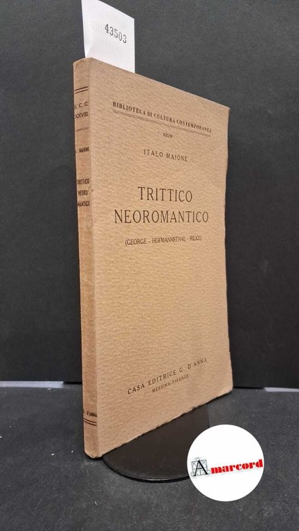 906 Maione, Italo Maione, Italo. Trittico neoromantico : George - Hofmannsthal - Rilke. Messina G. D'Anna, 1950. , G. D'Anna 1950 italiano, in ottavo 184 43503