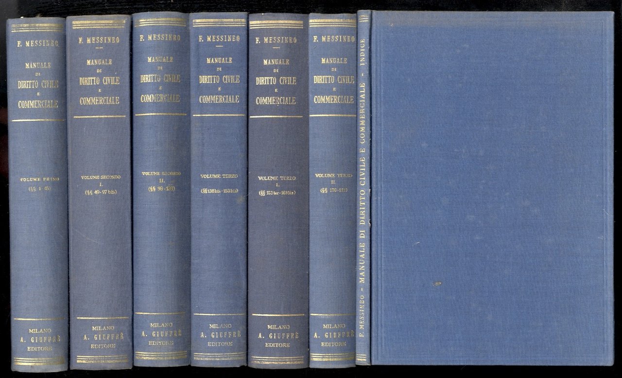 Milano, Giuffrè, 1951 - 1955, volumi 7, in-8, tutta tela editoriale blu. Condizioni molto buone.