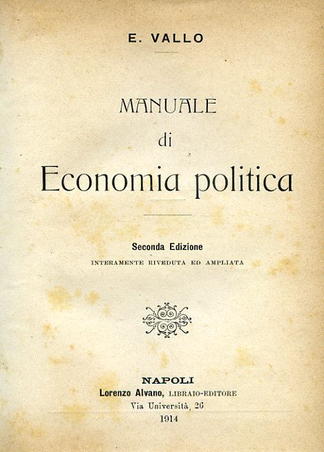 Manuale di Economia politica. Seconda edizione interamente riveduta ed ampliata | Libri antichi e moderni | Vallo E.