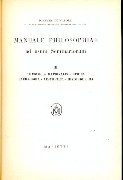 Manuale di philosophiae ad usum seminariorum - III : Theologia rationalis, ethica, paedagogia, aesthetica, historiologia. | Libri antichi e moderni | Ioannes Di Napoli.