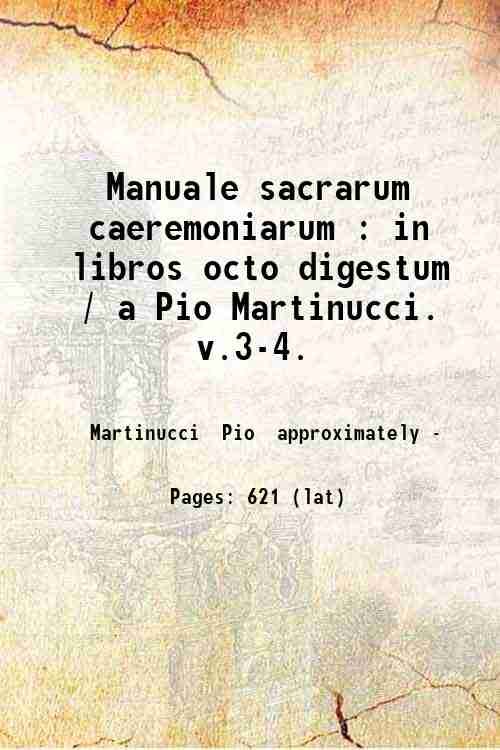 Manuale sacrarum caeremoniarum : in libros octo digestum / a Pio Martinucci. v.3-4. Volume 3-4 1879 | Libri antichi e moderni | Martinucci Pio Approximately