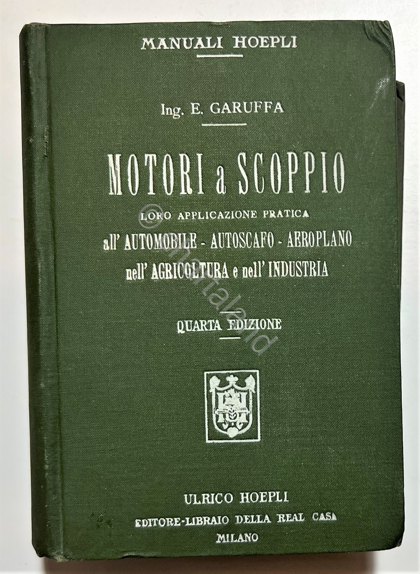 Manuali Hoepli - E. Garuffa - Motori a Scoppio e loro applicazioni pratiche all'automobile, all'autoscafo, all'aeroplano nell'agricoltura e nell'industria - ed. 1918 Testo in lingua italiana. Pagine 775 con illustrazioni e tavole. Coertina rigida. Condizioni molto buone.