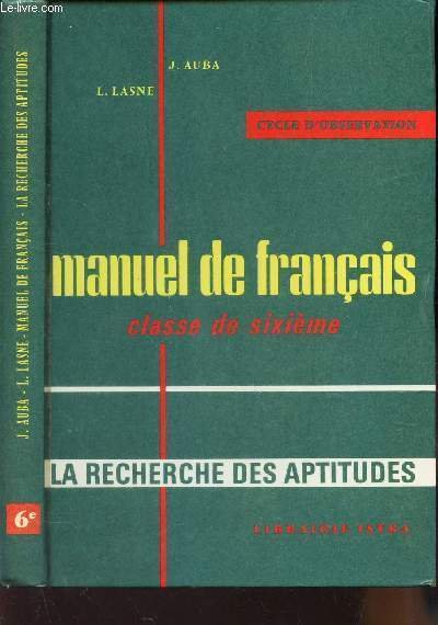 MANUEL DE FRANCAIS - CLASSE DE SIXIEME - "LA RECHERCHE DES APTITUDES" / CYCLE D'OBSERVATION | Libri antichi e moderni | Auba J., Lasbe L.