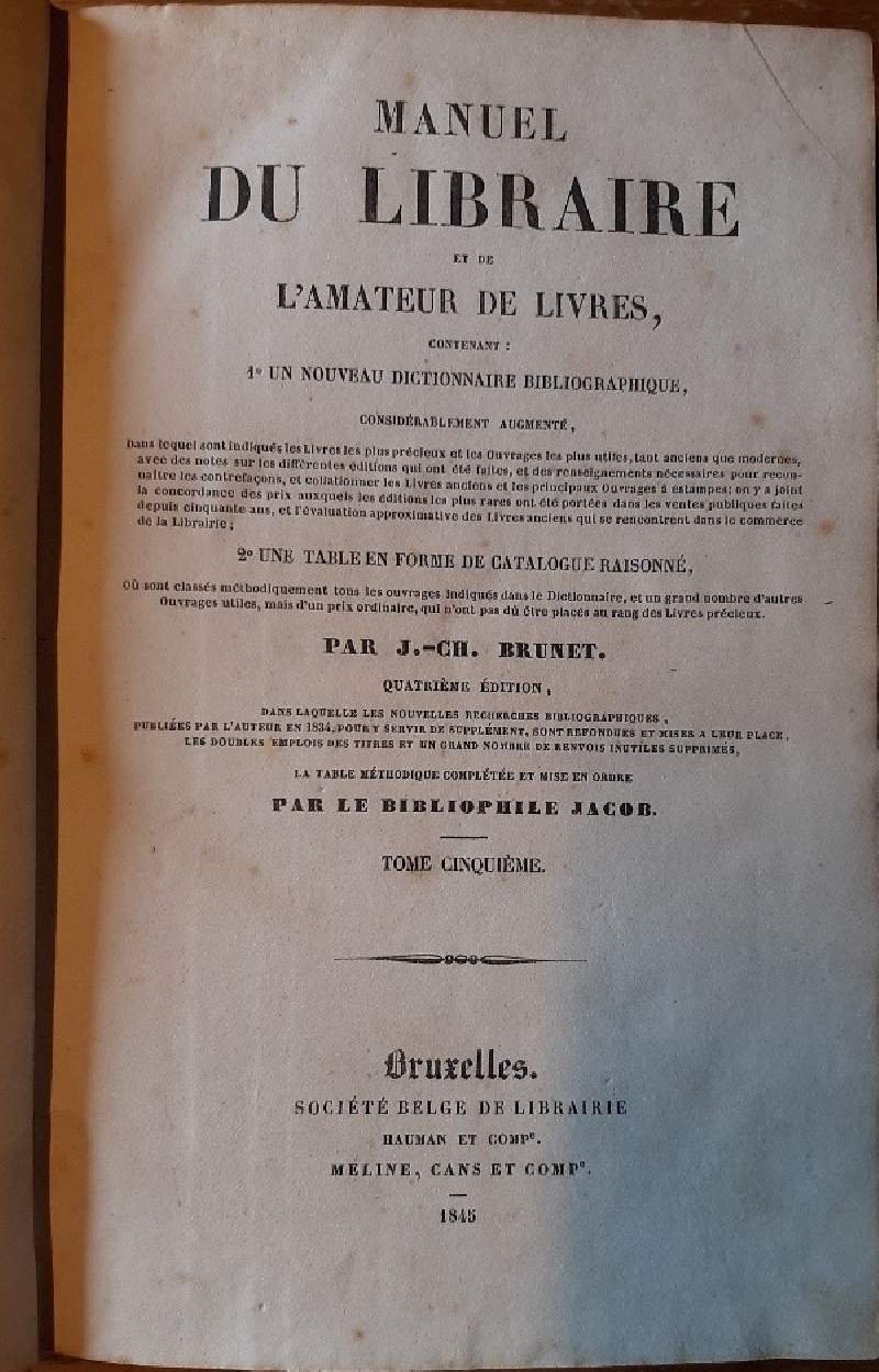 MANUEL DU LIBRAIRE ET DE L'AMATEUR DE LIVRES-TOME CINQUIEME- (1845)