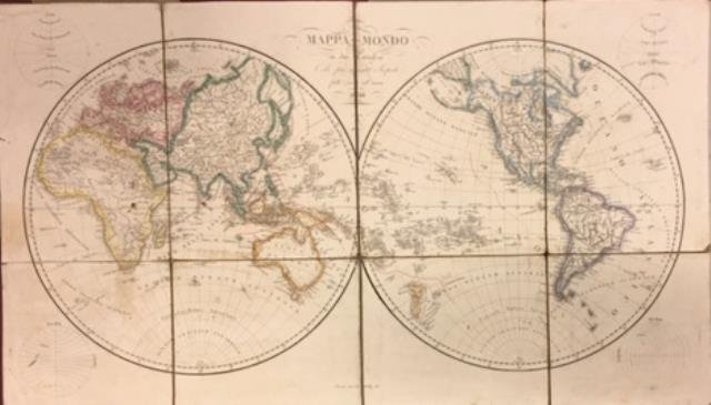 MAPPAMONDO IN DUE EMISFERI. Con le più recenti scoperte fatte sino all'anno 1846.