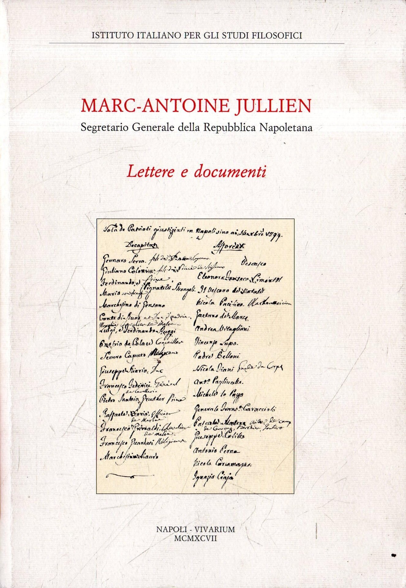 Jullien, Marc-Antoine Marc-Antoine Jullien segretario generale della Repubblica napoletana. Lettere e documenti. , Vivarium 1997, 604 (62102)