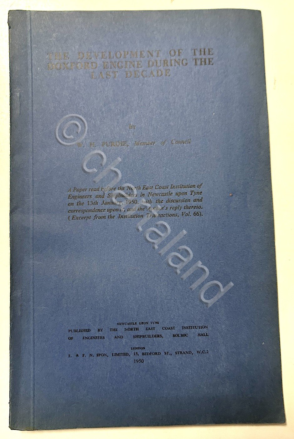 W. H. Purdie - The development of the doxford engine during the last decade - ed. 1950 pp. 70 con illustrazioni e molte tavole tecniche anche più, volte ripiegate