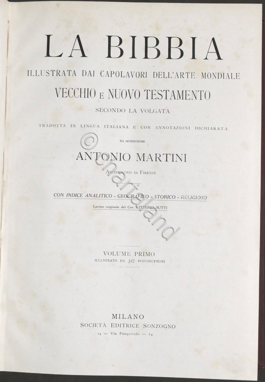 La Bibbia illustrata dai capolavori dell'arte mondiale: Vecchio e Nuovo Testamento secondo la volgata - Tradotta in lingua italiana e con annotazioni dichiarata da monsignore Antonio Martini , con indice analitico-geografico-storico-religioso lavoro originale del cav. Litterio Butti -