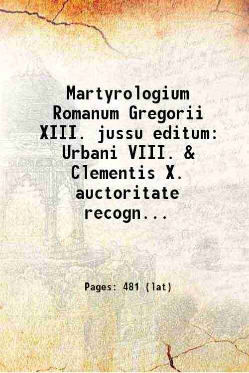 Martyrologium Romanum Gregorii XIII. jussu editum Urbani VIII. & Clementis X. auctoritate recognitum 1792