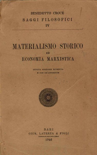 Materialismo storico ed economia marxista. Ottava edizione riveduta e con un'appendice | Libri antichi e moderni | Croce Benedetto