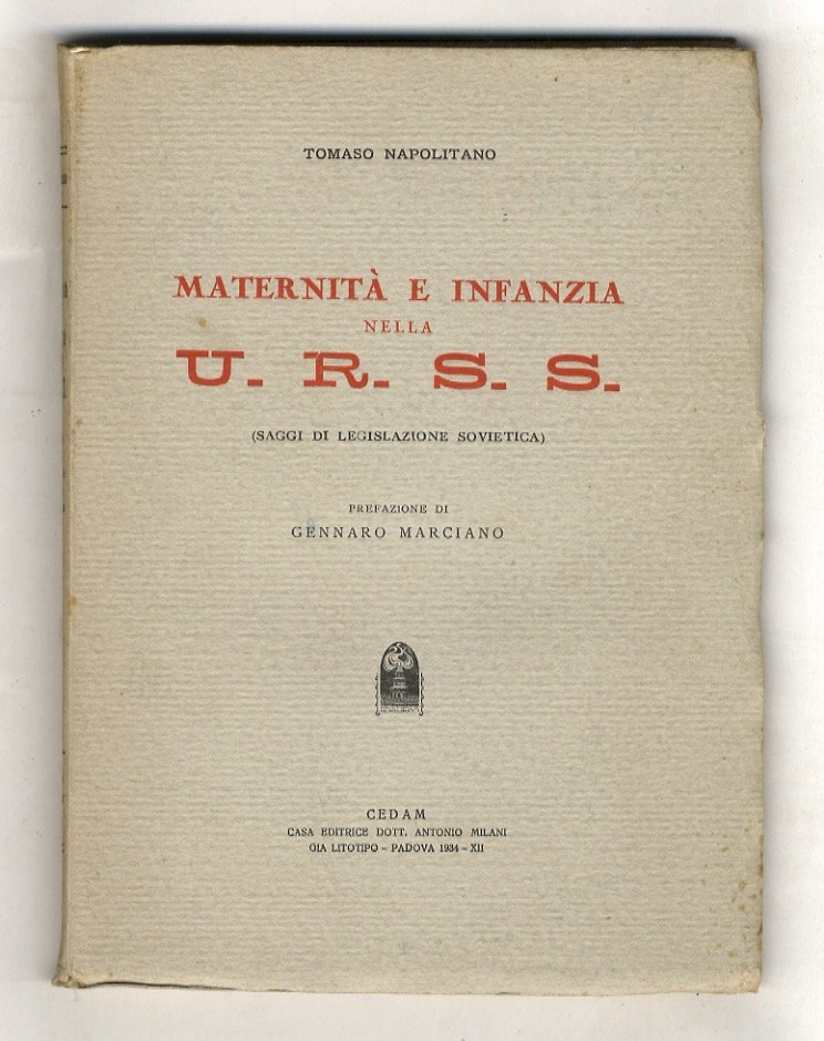 Maternità e infanzia nella U.R.S.S. (Saggi di legislazione sovietica). | Libri antichi e moderni | Napolitano Tomaso.