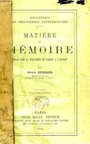 MATIERE ET MEMOIRE, ESSAI SUR LA RELATION DU CORPS A L'ESPRIT | Libri antichi e moderni | Bergson Henri