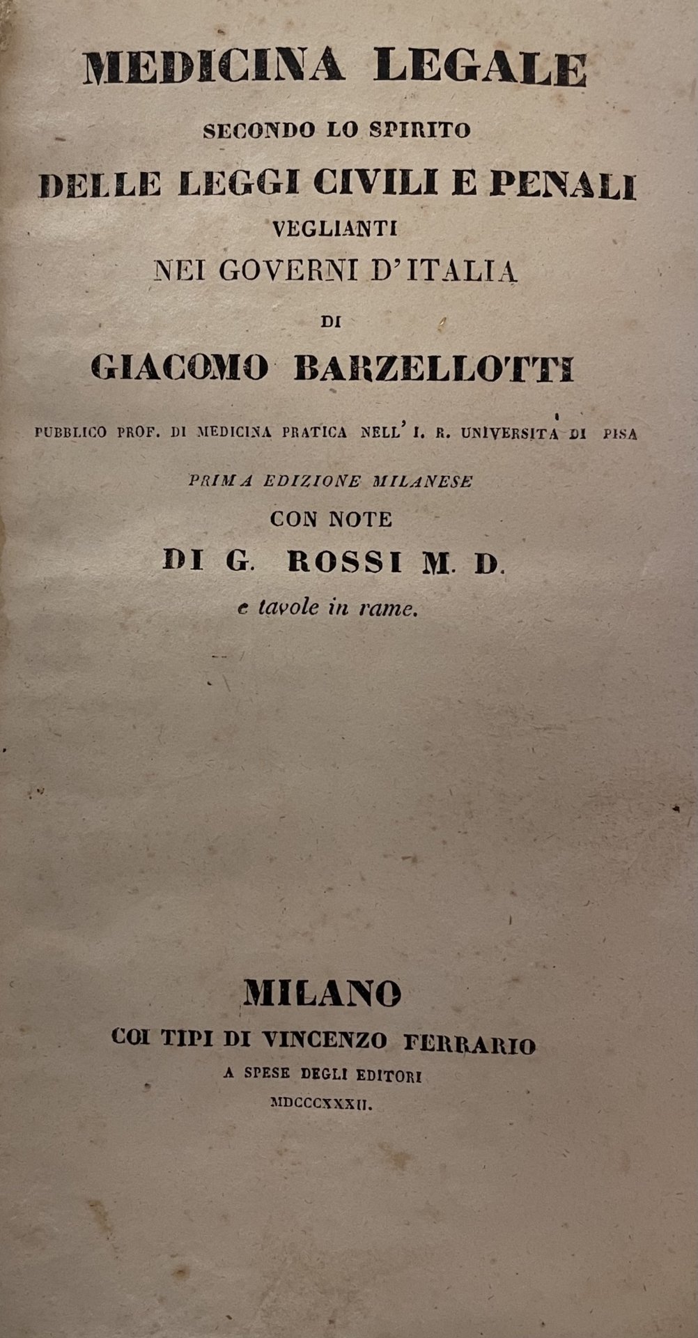 MEDICINA LEGALE SECONDO LO SPIRITO DELLE LEGGI CIVILI E PENALI VEGLIANTI NEI GOVERNI D'ITALIA | Libri antichi e moderni | BARZELLOTTI GIACOMO, ,BARZELLOTTI GIACOMO