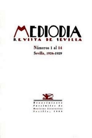 MEDIODÍA. Revista de Sevilla. Nº 1 al 14. Sevilla 1926-1929. Director: Eduardo Llosent y Marañón. Secretario: Rafael Porlán. Administrador: Alejandro Collantes de Terán. Redactor jefe: Joaquín Romero y Murube. Colaboraciones de: Alberti, Aleixandre, Mauricio Bacarisse, Bergamín, Rogelio Buendía, Cernuda, Chabás, Felipe Cortines Murube, G. Diego, Manuel Díez Crespo, Antonio Espina, García Lorca, JRJ, Rafael Laffón, A. Machado, Guillermo de Torre, Adriano del Valle, Fernando Villalón, etc. Ilustraciones de: Barradas, Bores, José Caballero, Dalí, Gaya, Benjamín Palencia, Pablo Sebastián, etc. Edición de José Mª Barrera López. Edición facsímil.