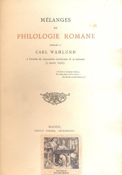 Melanges de philologie romane . Dedies a Carl Wahlund à l'occasion du cinquantieme anniversaire de sa naissance (7 janvier 1896).