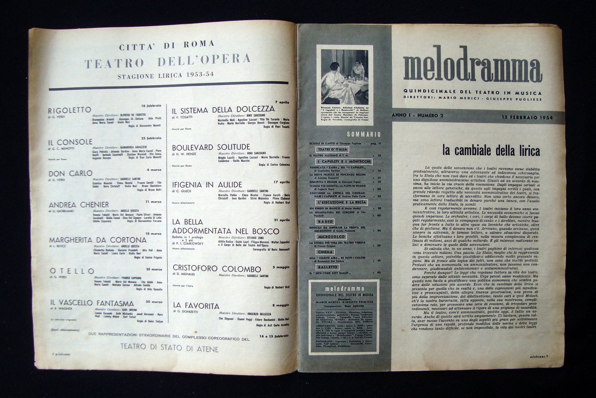 Melodramma Anno I Numero 2 Febbraio 1954 I Capuleti Montesecchi Bellini Massimo | Libri antichi e moderni |