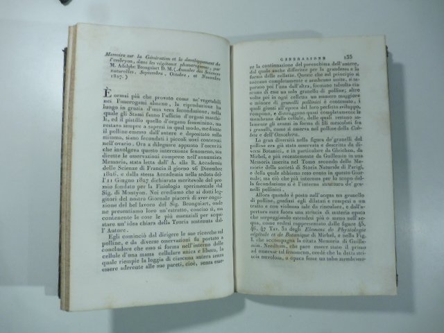 Memoire sur la generation et le developpement de l'embryon dans le vegetaux phanerogames par A. Brongniart.(Stralcio da: Nuovo giornale de' letterati. N. 38. 1828)