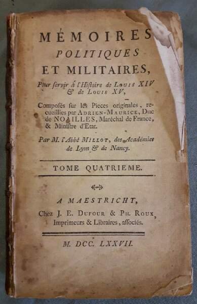 MEMOIRES POLITIQUES ET MILITAIRES POUR SERVIR A L'HISTOIRE DE LOUIS XIV & DE LOUIS XV- Tome quatrieme( 1777)