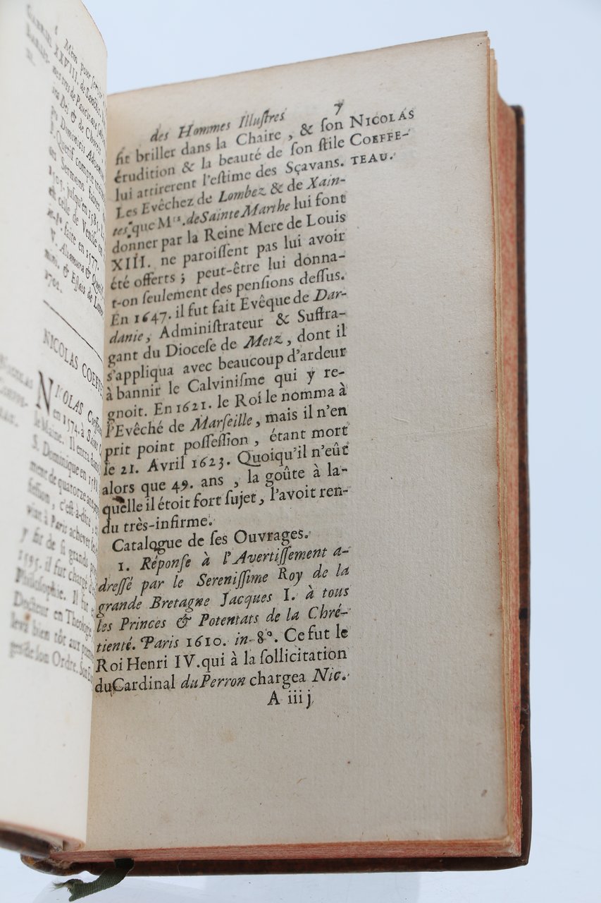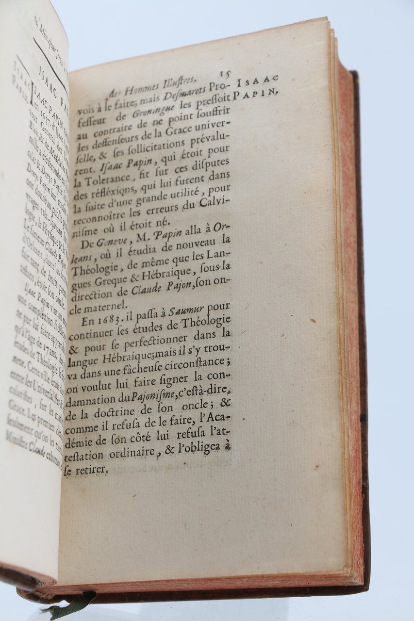 Chez Briasson | à Paris 1727 | 10 x 17 cm | relié | [ENGLISH DESCRIPTION ON DEMAND] | Edition originale. Reliure en pleine basane d'époque. Dos à nerfs orné. Exemplaire aux armes du Baron Carré de Vandeuvre, ministre de Louis XVIII. Les pièces de titres et de tomaisons ont été refaites à la même époque, au début du XIXe. Ce volume contient les articles biographiques et bibliographiques suivants : Joseph Saenz d'Aguirre, Noël Alexandre, Vincent Auria, Adrien Baillet, Redempt Baranzan, Gabriel Barelette, Jean Bona, Barthelemi de Chasseneuz, Guillaume Chillingworth, Nicolas Coffeteau, Philibert Collet, André Dacier, Jean Daillé, Simon Escopius, Tanegui Le Fèvre, Anne Le Fèvre, Vitale Giordani, Pierre Halle, Godefroy Herman, François Lamy, Hubert Languet, Jean A, Van der Linden, Job Ludolf, Laurent Magalotti, Jean B. Morin, Henri Noris, Isaac Papin, Soimon Paulli, François Redi, Guillaume Ernest Tentzelius, Louis Thomain, Josph Mari Tomassi, Jean Foy Vaillant, Adrien de Valois.