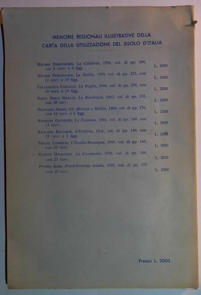 Memoria illustrativa della carta dell'utilizzazione del suolo del Friuli-Venezia Giulia. Introduzione di Carmelo Colamonico. Il volume presenta un piccolo taglio al dorso, un incurvamento superiore da compressione, un ingiallimento ai bordi, l'interno è buono. 171 Buono (Good) .
