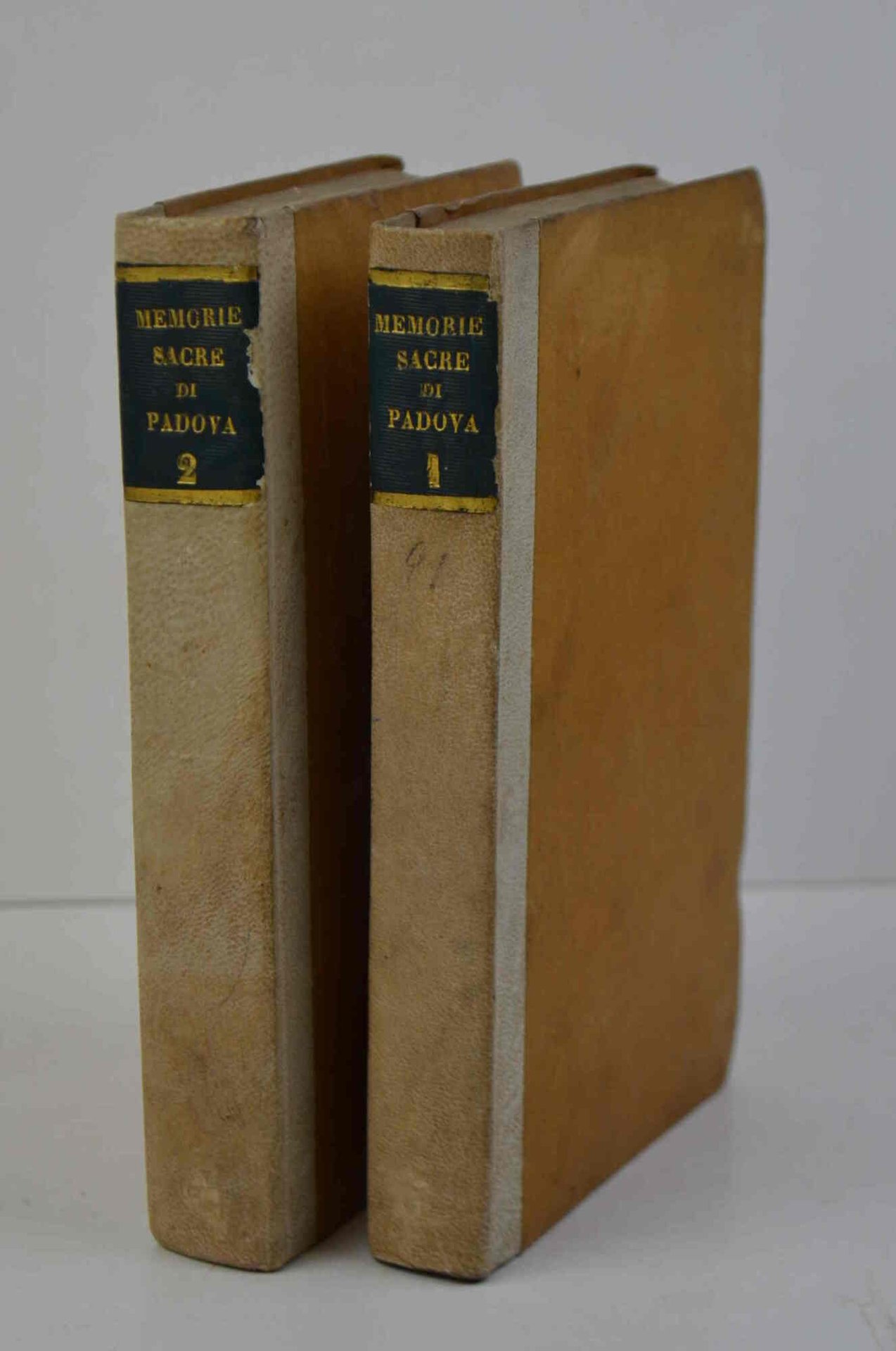 Due volumi di cm. 19,5, pp. viii, 382; 8, 451 (1). Solida legatura coeva in mezza pergamena, dorsi lisci con titoli in oro su tasselli. Ex libris Caproni. Esemplare genuino, seppur con foriture dovute alla qualità della carta utilizzata. Privo verosimilmente di una carta bianca preliminare del secondo volume (o un occhietto?). Edizione originale ed unica, non comune.