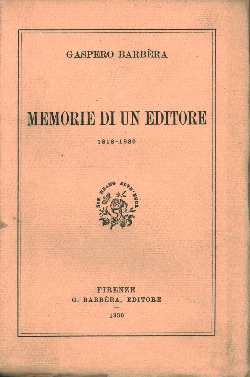 Memorie di un editore | Libri antichi e moderni | Gaspero Barbèra