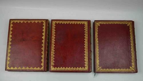 Tre volumi di cm. 26, pp. xvi, 295 (3); xxiii (1) 286 (2); viii, 277 (1). Con 14 belle tavole incise in rame e più volte ripiegate f.t. Splendida legatura coeva in pieno marocchino rosso, dorsi a nervi con fregi e titoli in oro su doppio tassello in pelle verde. Piatti inquadrati da decorazioni concentriche, sguardie marmorizzate e tagli dorati. Esemplare fresco ed in eccellente stato di conservazione. Edizione originale, non comune e, nel presente esemplare, arricchita da una legatura assai decorativa. Cfr. Lozzi (3411): "Ragionamento storico ed apologetico con 12 grandi tavole, raro ed assai pregevole.".