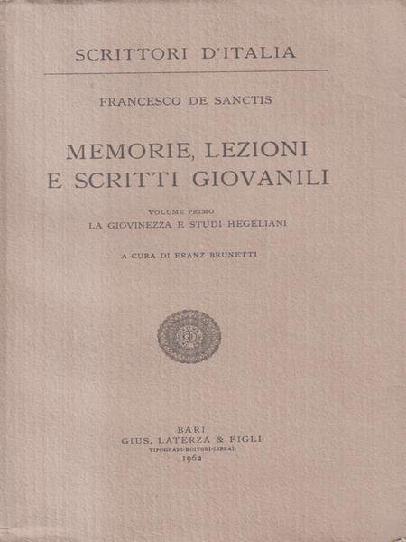 Memorie, Lezioni E Scritti Giovanili, Volume 1 | Libri antichi e moderni | De Sanctis, Francesco M.