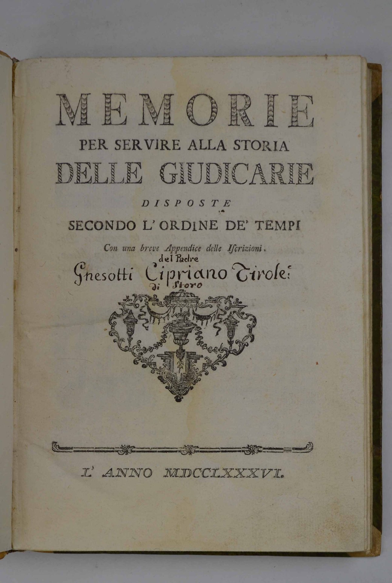 Memorie per servire alla storia delle Giudicarie… | Libri antichi e moderni | GNESOTTI CIPRIANO.
