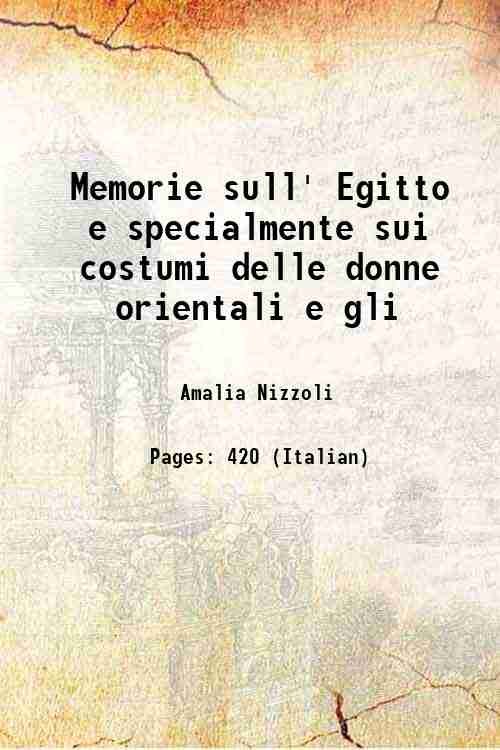 Memorie sull' Egitto e specialmente sui costumi delle donne orientali e gli 1841 | Libri antichi e moderni | Amalia Nizzoli