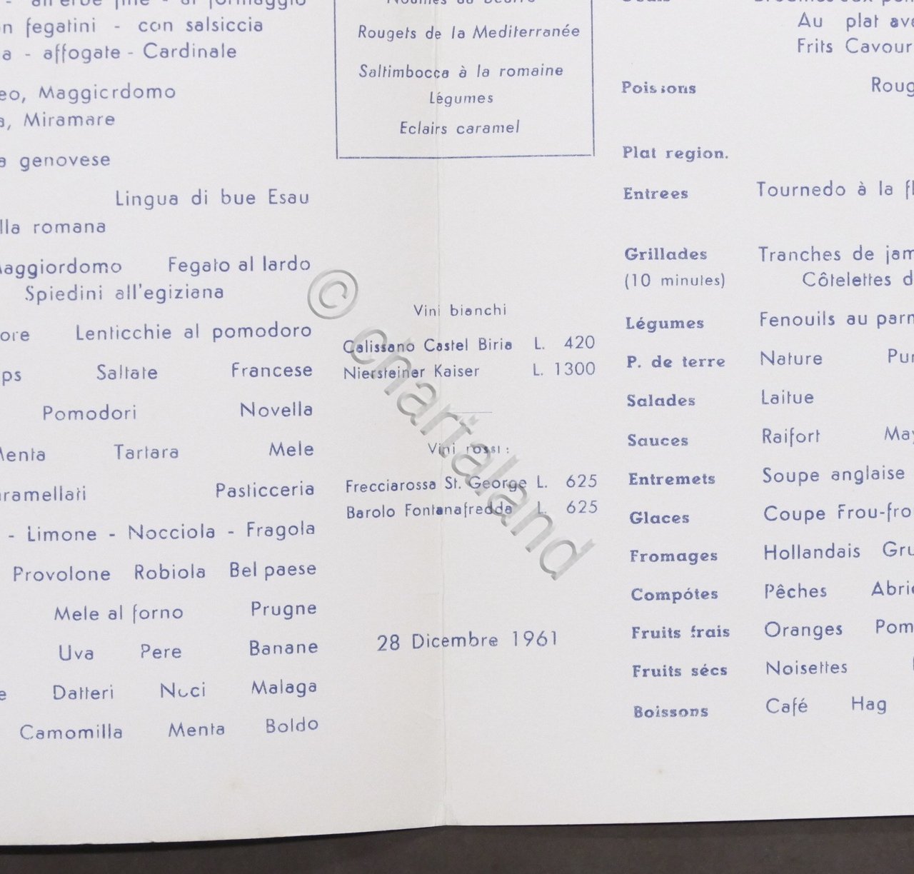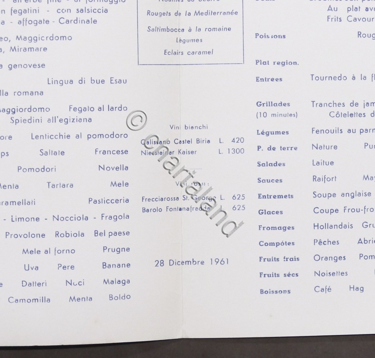 Menu Navi - Costa Crociere Tn. Federico C - 28 Dicembre 1961 Colazione | Libri antichi e moderni |