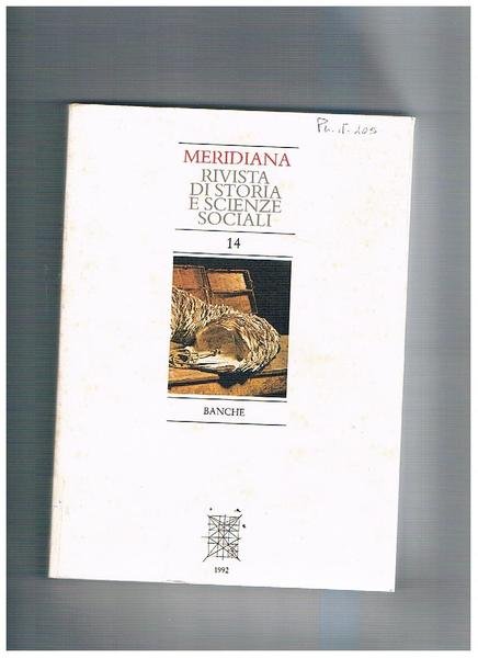 Meridiana, rivista quadrimestrale dell'istituto di storia meridionale e scienze sociali. N° 14 maggio 1992. Banche: prima della banca d'Italia, spinte unificanti e resistenze regionali; banchieri e politici a catania. Uno scandalo di fine ottocento; il ruolo della banca nel mezzogioeno d'oggi; ecc.