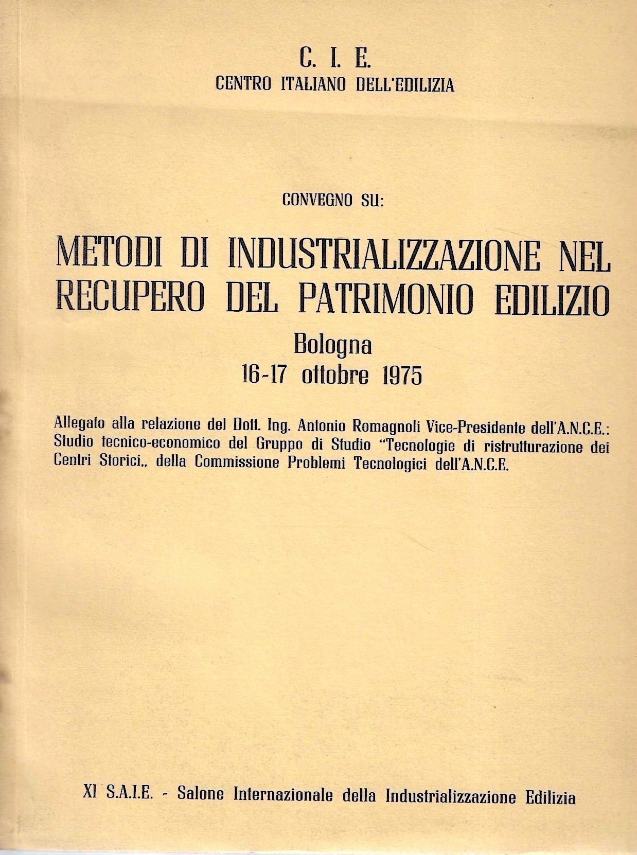 Metodi di industrializzazione nel recupero del patrimonio edilizio. Atti del Convegno - Bologna, 16-17 ottobre 1975