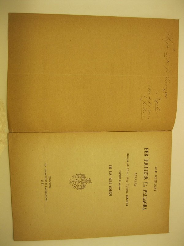 Mie opinioni per togliere la pellagra. Lettera diretta all'Ill.mo. Sig. Comm. Mussi prefetto di Bologna
