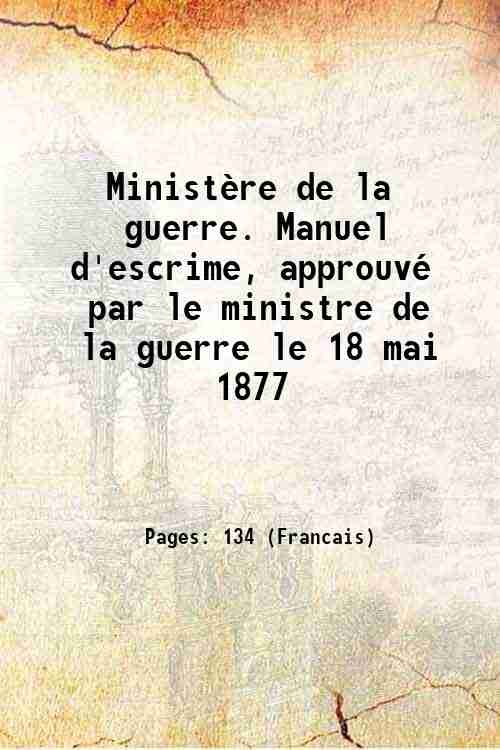 MinistËre de la guerre. Manuel d'escrime, approuvÈ par le ministre de la guerre le 18 mai 1877 1877