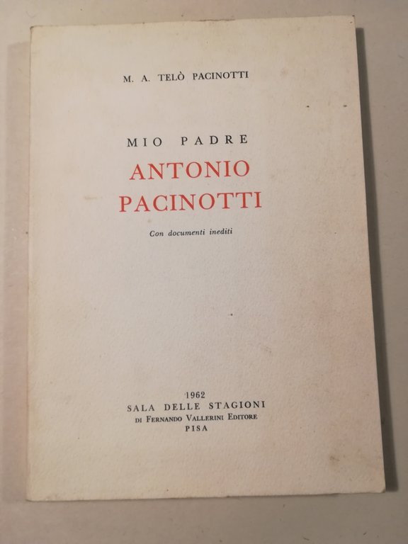 Mio padre Antonio Pacinotti con documenti inediti | Libri antichi e moderni | TELO'' PACINOTTI, M. A.