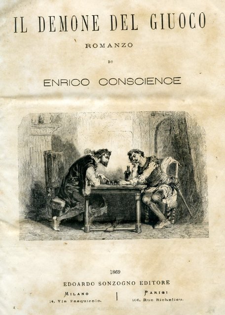 Miscellanea di 4 feuilletons in un vol. in-4° in legatura coeva in m. percallina con titolo e fregi in oro al dorso. Numerose incisioni xilografiche n.t. ad ognuno dei romanzi. Testo bicolonne. Bell'esemplare. Comprende: 1) Henri Conscience, Il demone del giuoco. Romanzo. Milano, Sonzogno, 1869, pp. 66. 2) George Sand, Il segretario intimo. Racconto. Ibid., s.d., pp. (2), 59. 3) Alexandre Dumas figlio, Il romanzo di una donna. Ibid., s.d., pp. (2), 132. 4) Alexandre Dumas padre, Amaury. Romanzo. Ibid., pp. (2), 92.