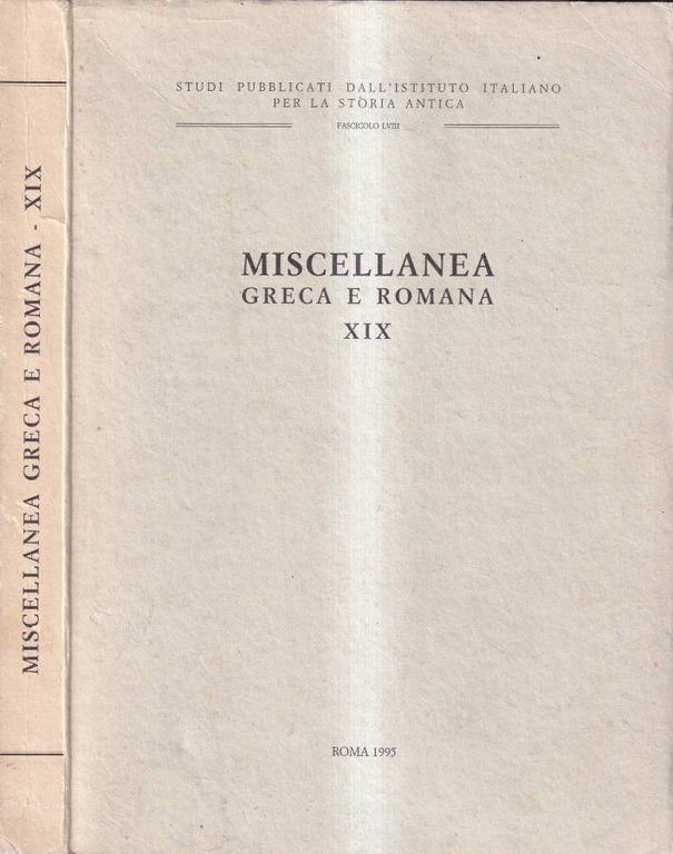 Miscellanea greca e romana XIX | Libri antichi e moderni |