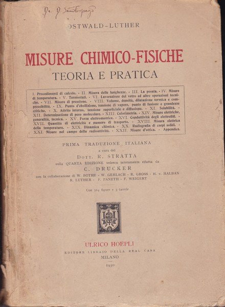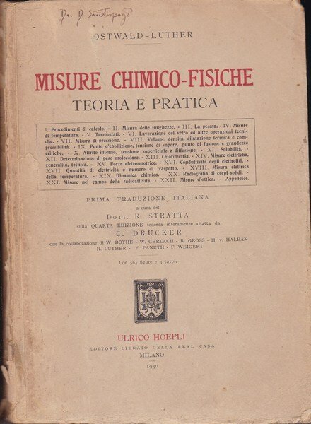 Misure chimico-fisiche. Teoria e pratica. | Libri antichi e moderni | Ostwald - Luther, ,Ostwald - Luther